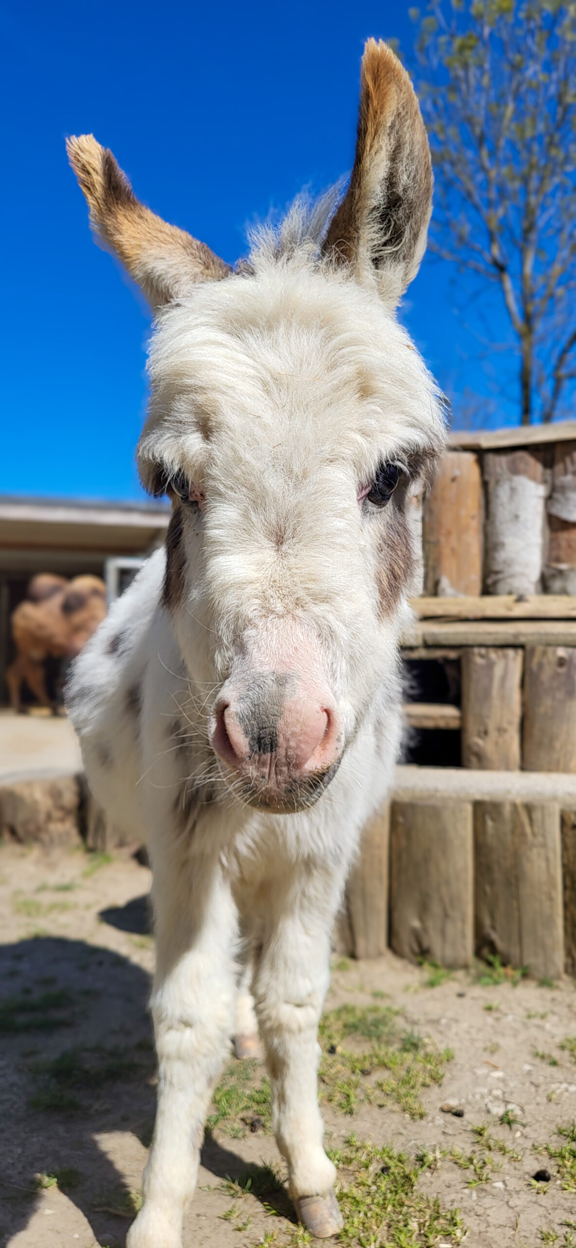 Pablo est un tout jeune âne miniature américain, né en 2024, qui participe à notre programme de thérapie assistée par l’animal. Sa petite taille est inversement proportionnelle à son audace et Monsieur sait donc se faire remarquer, même au milieu de ses cousins de plus grand format (nos ânes communs et baroques blancs) ! Et comme on le chante ici, « Pablito n’est pas grand, mais il est vaillant… Pablito est petit, mais c’est mon ami » !