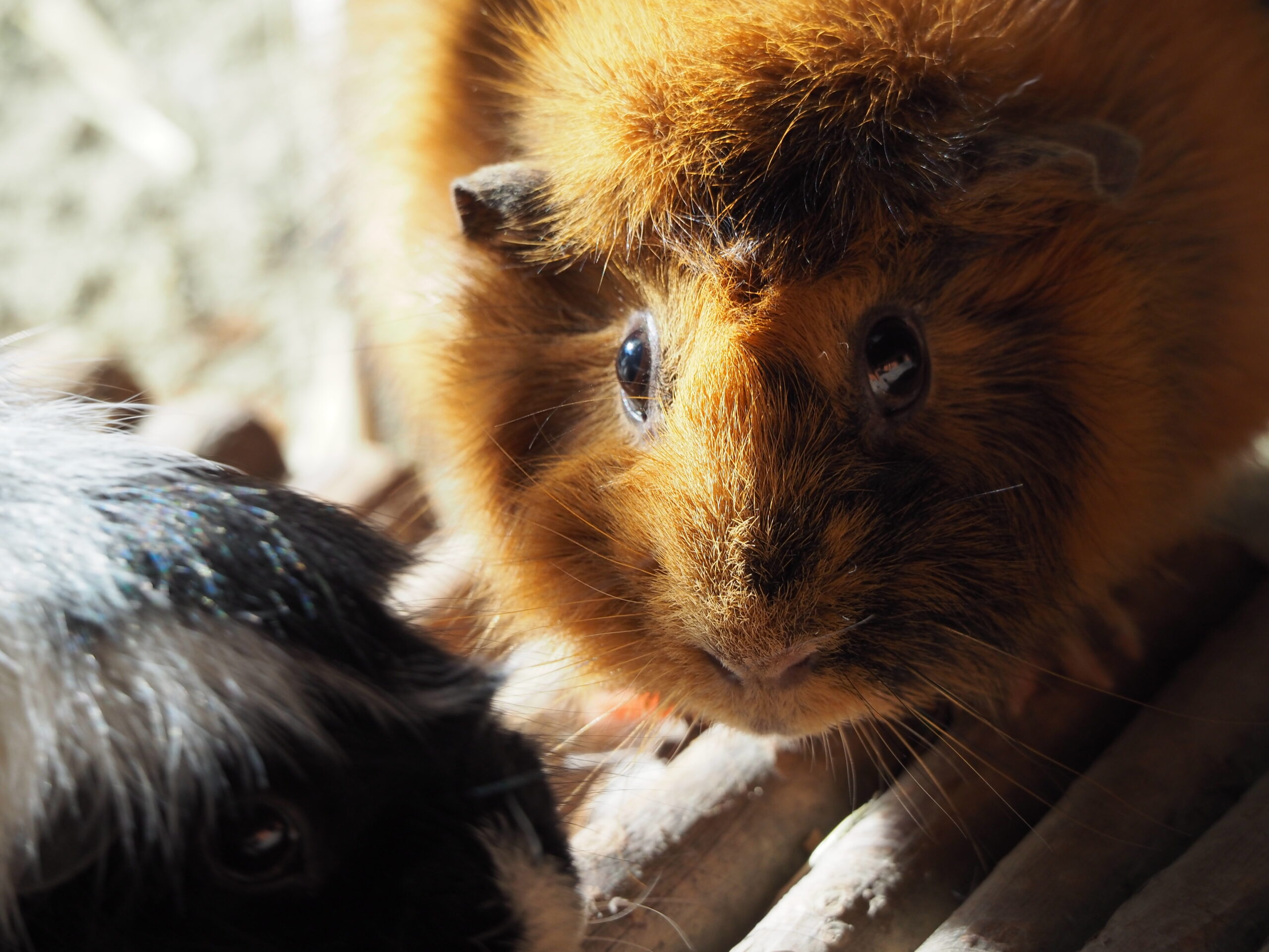 Aka est une femelle cochon d’Inde domestique, qui fait partie de notre programme de thérapie assistée par l’animal. Elle est rousse.